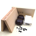 折碁盤に厚さ約9mmガラス碁石と人気のプラスチック碁笥の囲碁盤セット